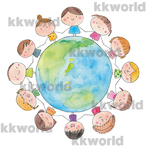 世界の人が地球上で仲良くてをつなぐイメージです。