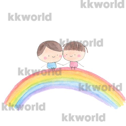 にじの橋の上で楽しくおしゃべりしながら、また虹の上であいたいね・・・